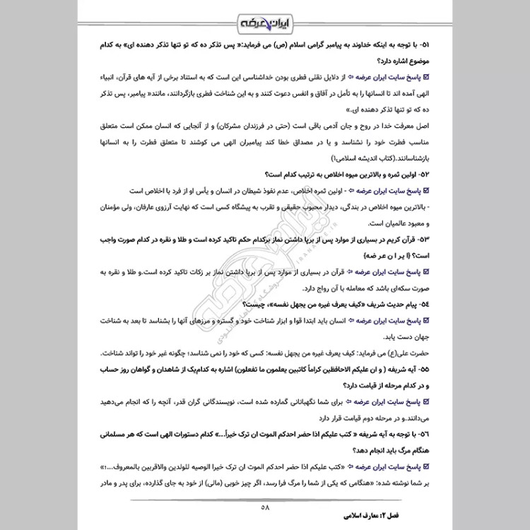 فصل 2: سوالات معارف اسلامی {صفحه 49 - 96 سوال}