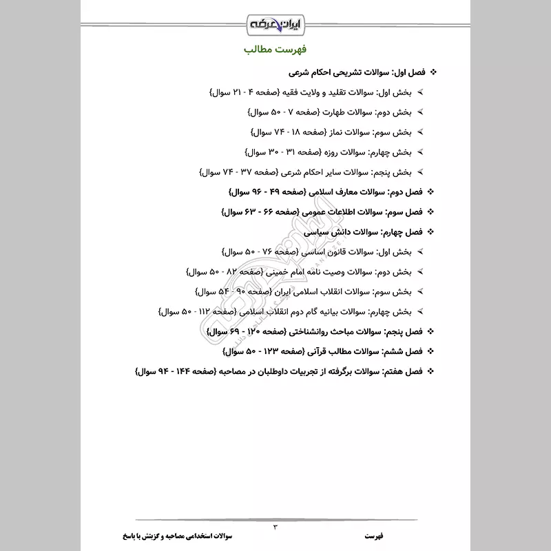 بخش 3: سوالات انقلاب اسلامی ایران {صفحه 90 - 54 سوال}
