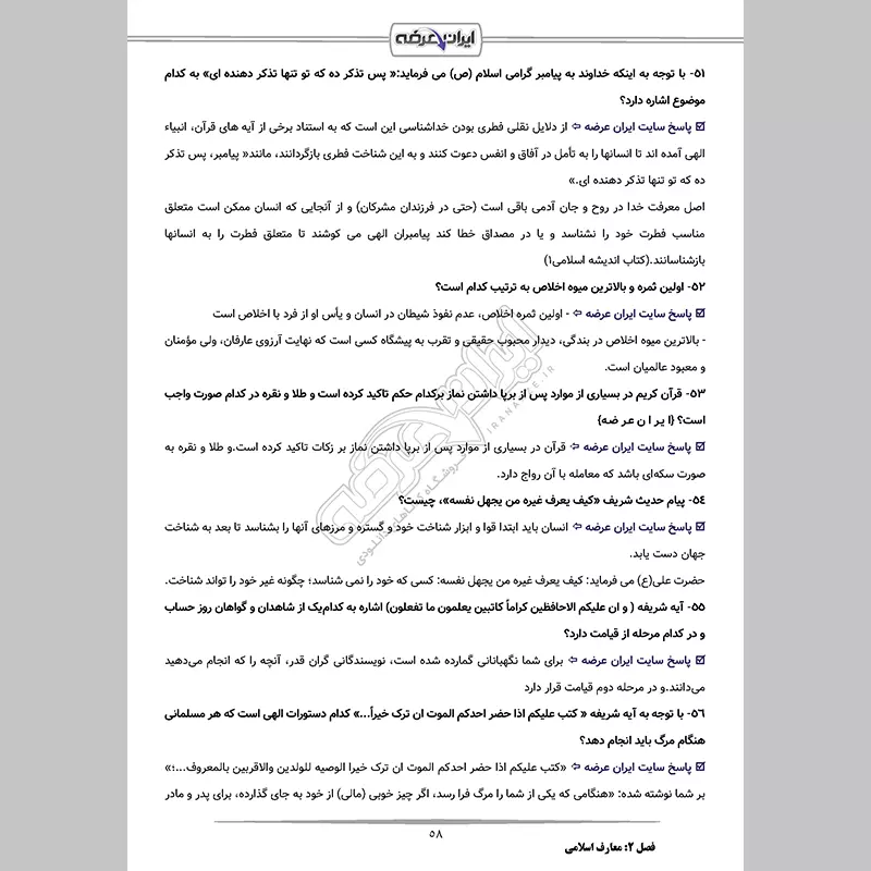فصل 2: سوالات معارف اسلامی {صفحه 49 - 96 سوال}