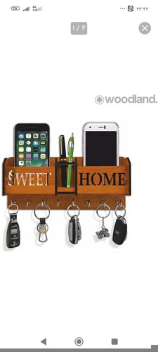 جا کلیدی دیواری نگهدارنده موبایل و جا مدادی چوبی مدل 1004